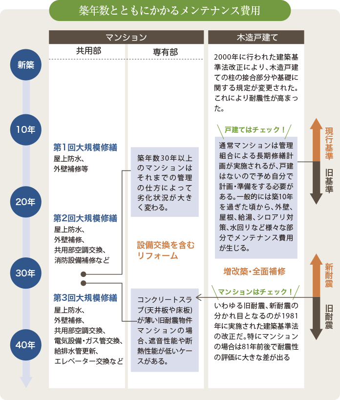 築年数が古いほど物件価格自体は安くなりますが、年数経過とともに傷みや劣化も生じます。